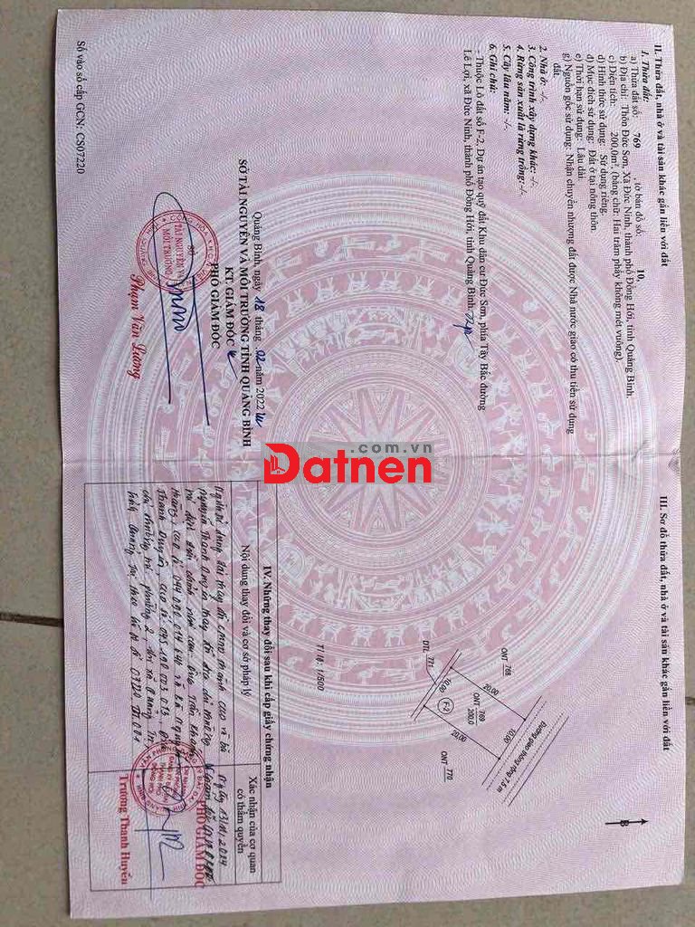 Chính chủ bán lô đất thổ cư full sổ đỏ 200m2 thuộc KDC Đức Sơn, Đồng Hới, Quảng Trị (Quảng Bình cũ).