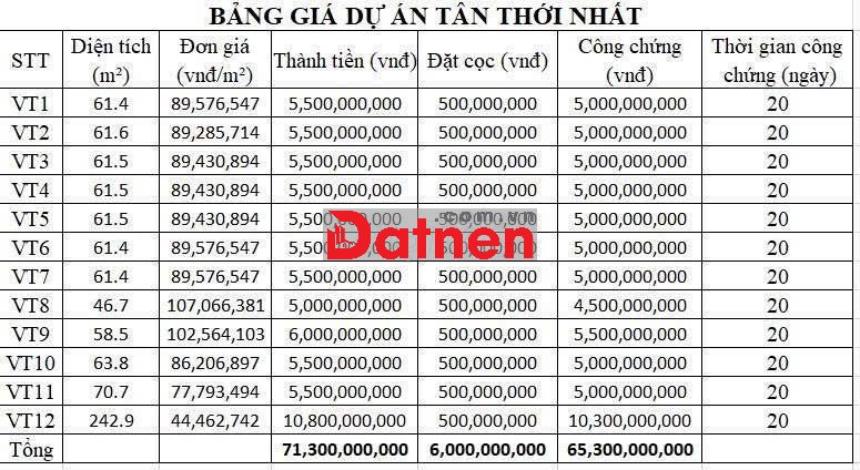 Diện tích, bảng giá như trong sơ đồ hình ảnh