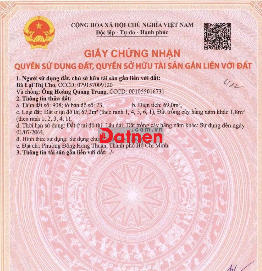 diện tích đất 4x15,4 thổ cư 61m2