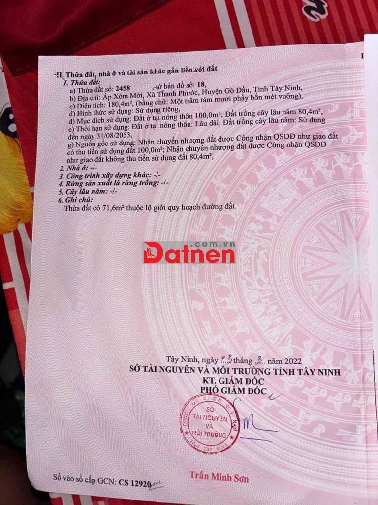 Khu Phố Trâm Vàng 2, Gò Dầu, Tây NinhMức giá