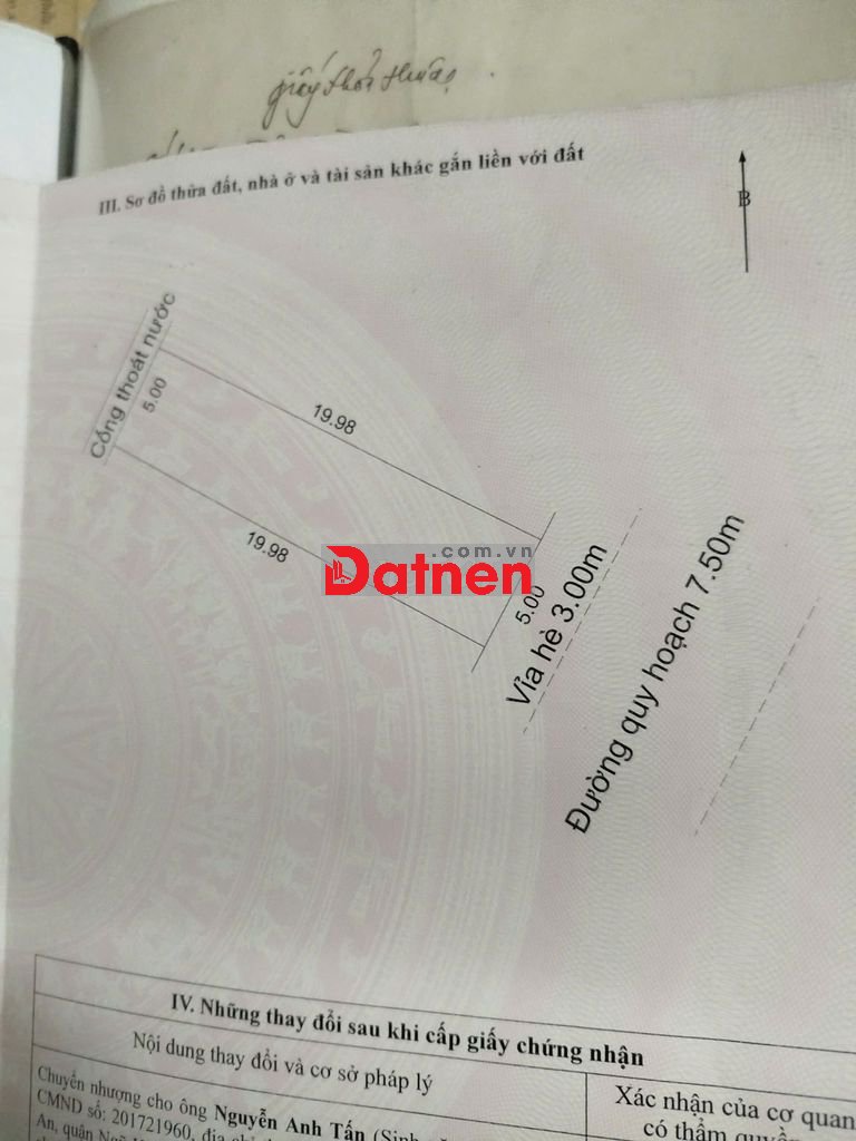 Dt : 100m2 hướng Tây Bắc