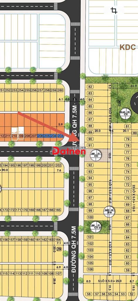 - Đường 7m5 vỉa hè 4m5. Kẹp công viên 10m