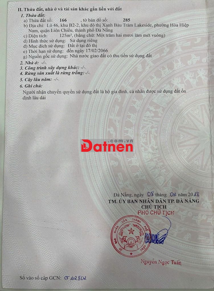 Bán đất 125m² đường Trung Lập 18 – Hướng Tây Nam – Giá 3,9 tỷ