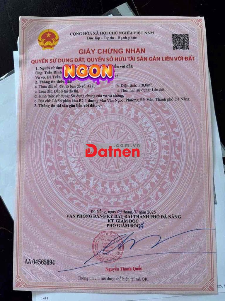Thông tin chi tiết: Bán Lô Đất Đường Mai Văn Ngọc