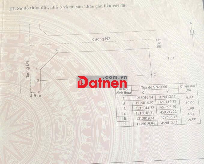 Diện tích: 185m2 (bao gồm 2 lô: 90m2 và 95m2)