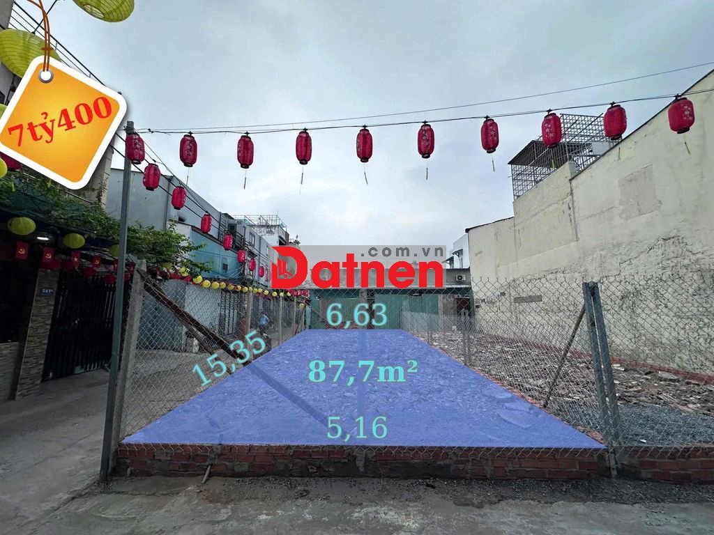 ▫️Góc: 5,16 x 15,35 (Nở hậu 6,20m) = 87,7m2 ( Đông Bắc ) | 💰: 7 tỷ 400