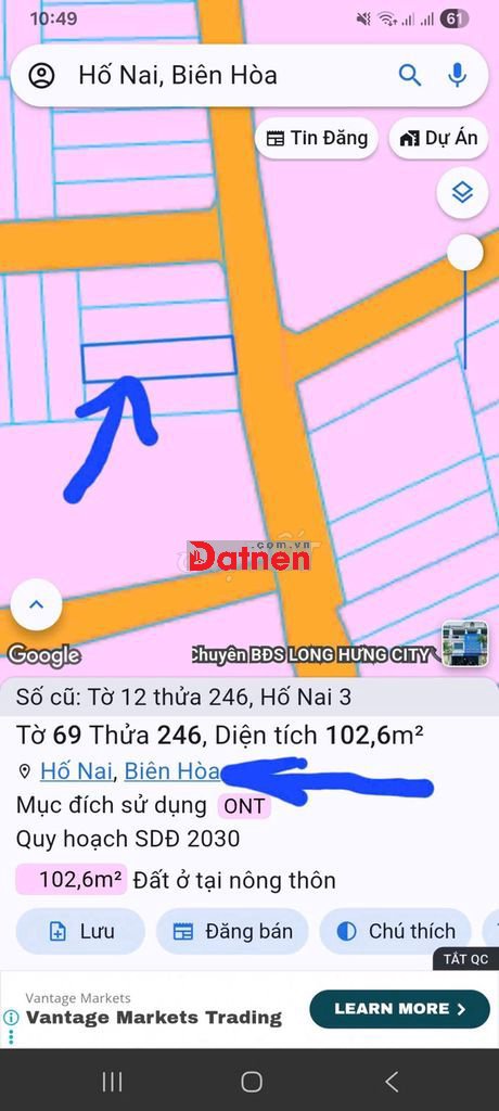 CHÍNH CHỦ BÁN Lô Đất Full Thổ Cư ODT đườg nhựa Phường Hố Nai, Đồng Nai
