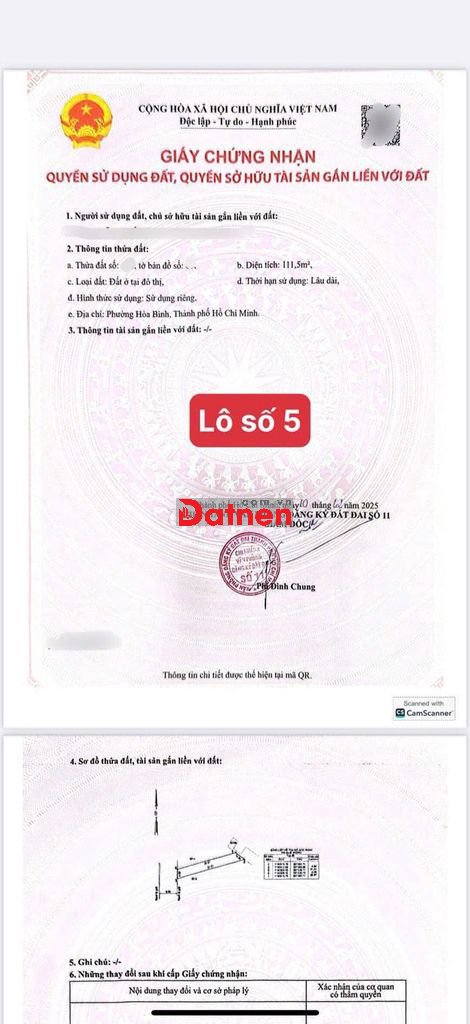 💥 Cho phép xây dựng : 1trệt, 1 lững, 4 lầu, sân thượng, ban công 0.9m.