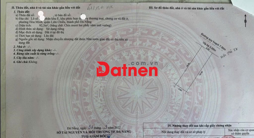 -Đường: 7,5m, lề 3m