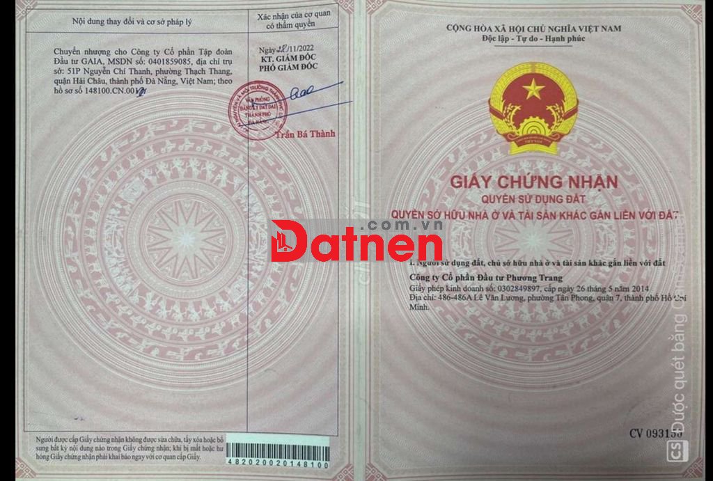 Diện tích : 100 m2 . Ngang 5m