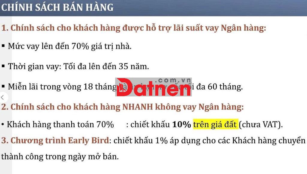 Chiết khấu thanh toán cho khách hàng không vay 10%.