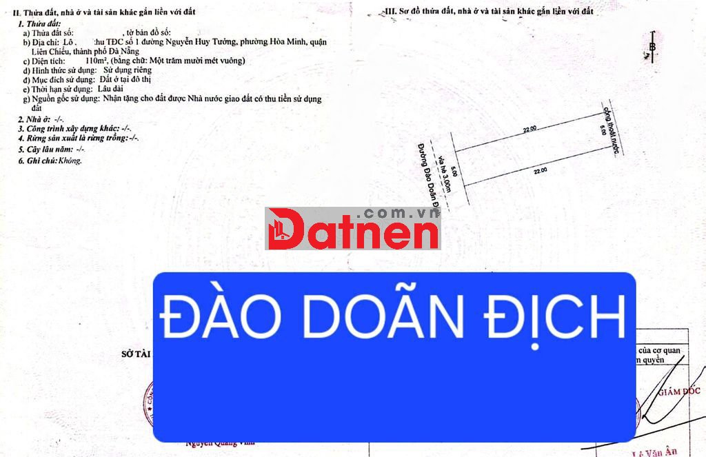 -DTĐ: 110m2 (5x22)m