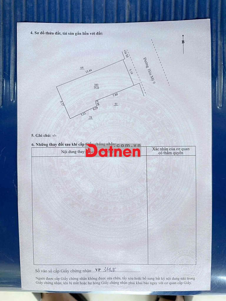 Thông tin chi tiết: chào bán lô đất mặt tiền số 94 Hoà Mỹ 9 - Liêu Chiểu