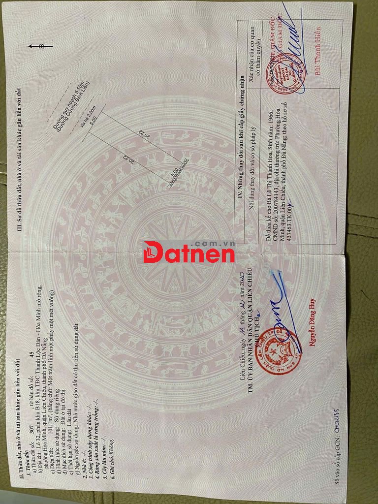 - Diện tích khủng 101m2. Ngang 5x20,2m