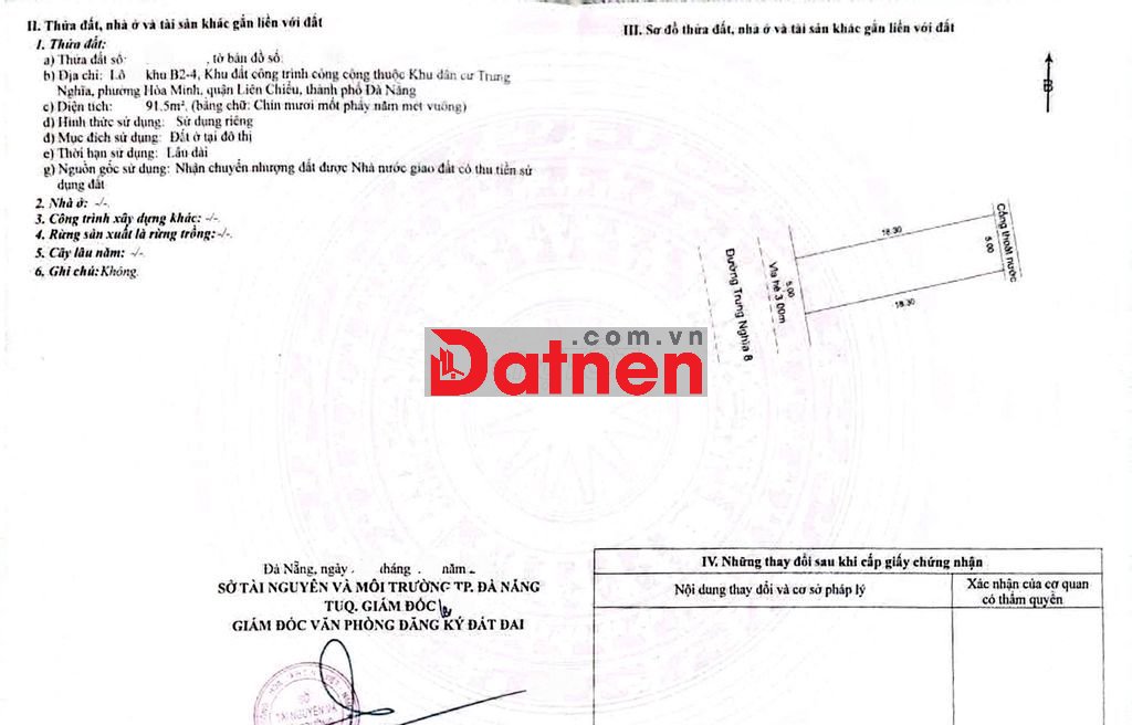 -DTĐ: 91,5m2 (5x18.3)m