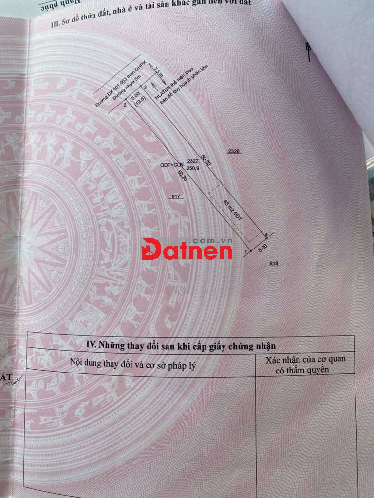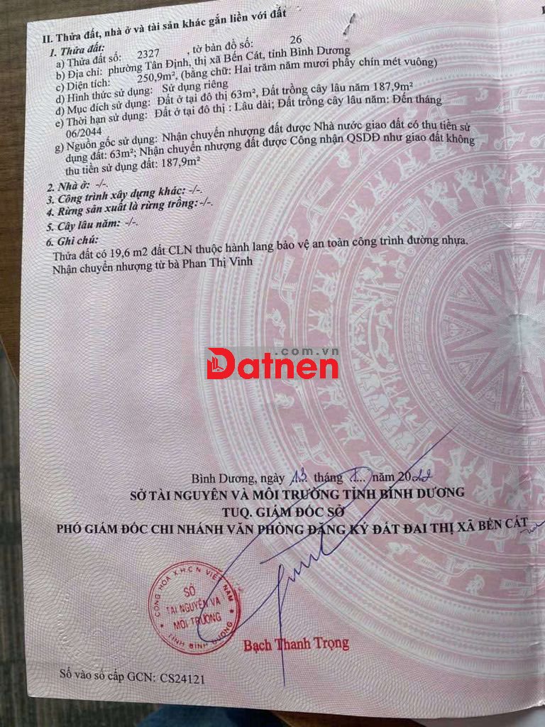 Với diện tích : 5m x 50 thổ cư 63m , đường nhựa thông ... Gần chợ Hoàng Gia