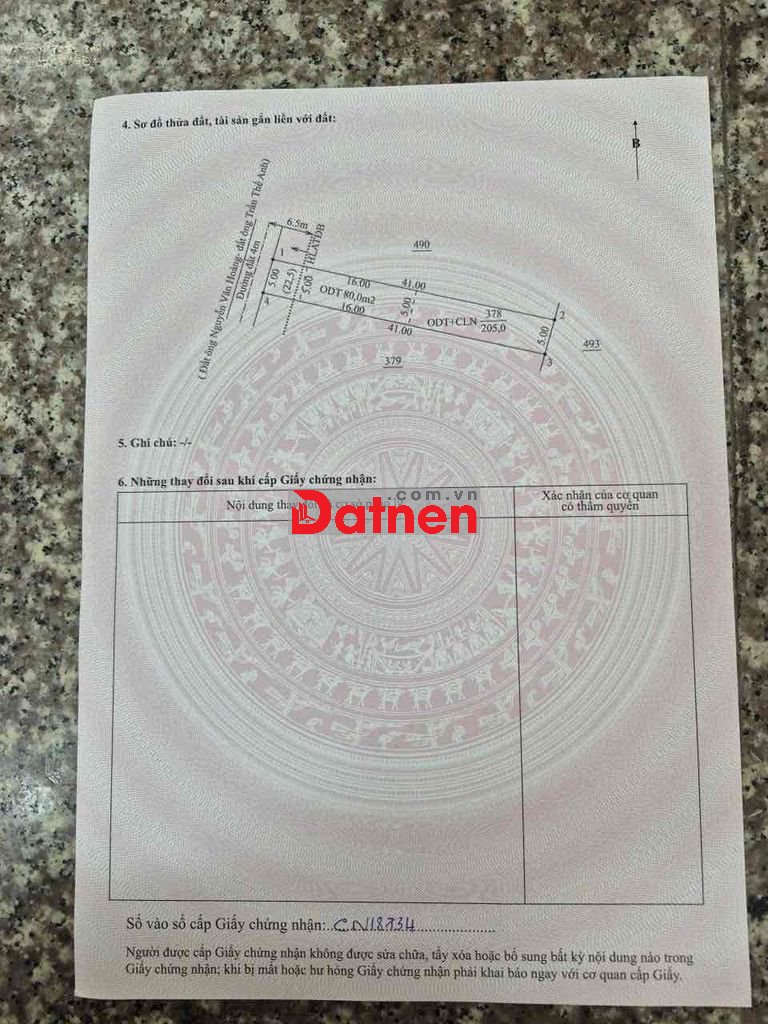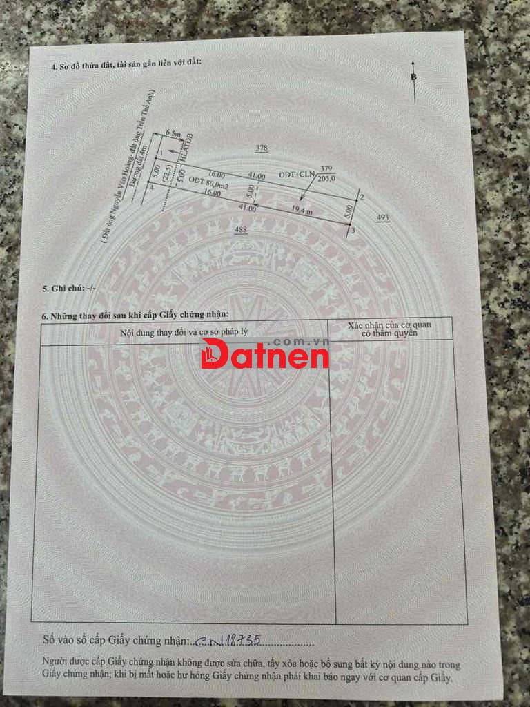 Dt : 5x41= 205m thổ cư 80m