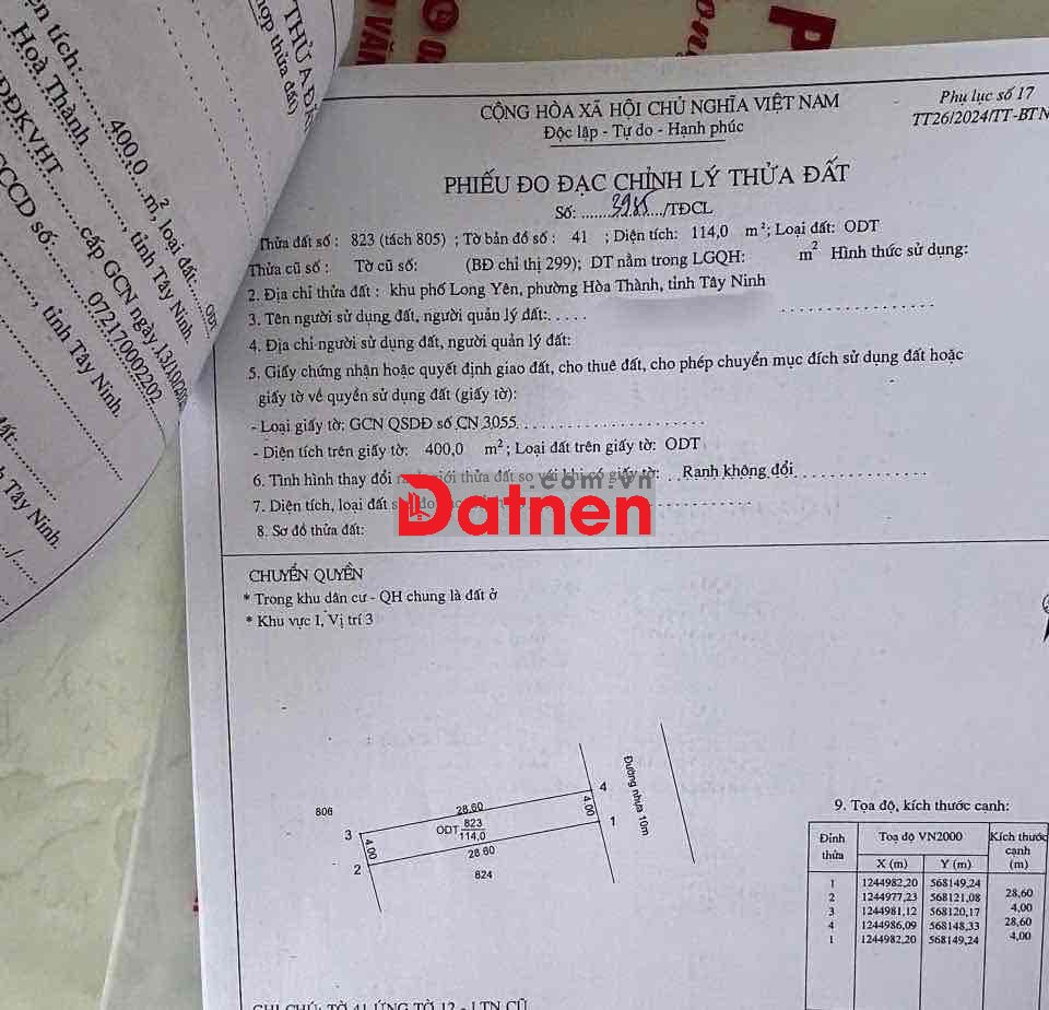 Dt 9m x 99m tc 114m2, nở hậu 19m, tổng diện tích 1.580m2, đường nhựa 10m khu dân cư, đường thông ra Ql22B. Miếng này khách xây khách sạn hoặc khu nghỉ dưỡng là quá đẹp luôn ạ