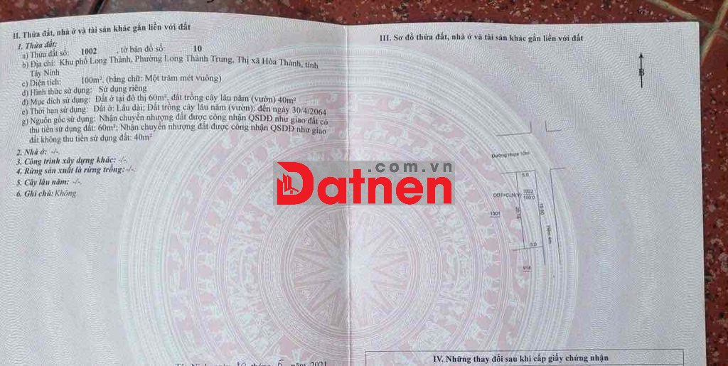Dt 10 x 20m tc 120m2, đã tách sẵn 2 thửa 5m,
