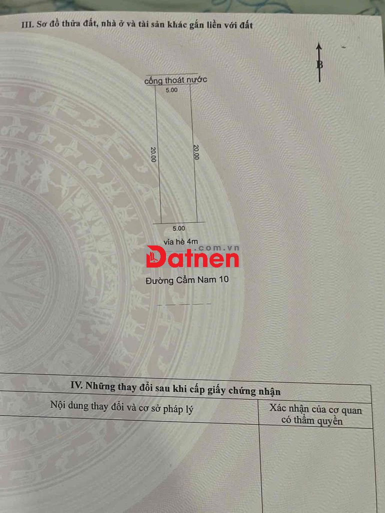 - Diện Tích 100m2(5m x 20m), Hướng Nam