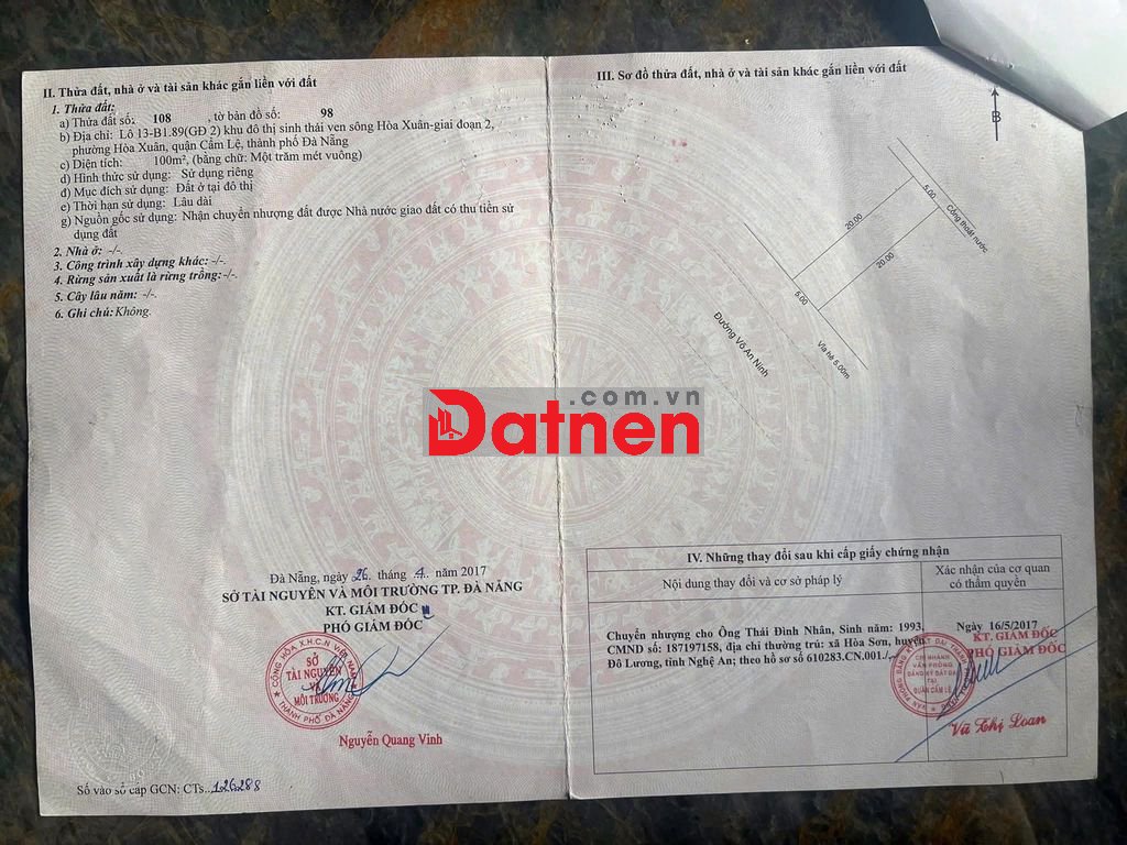 Quý vị đang xem nội dung tin rao "Chủ gởi bán 2 lô đất liền kề đường 10,5m Võ An Ninh - Hòa Xuân .". Mọi thông tin, nội dung liên quan tới tin rao này là do người đăng tin đăng tải và chịu trách nhiệm. Datnet.com.vn luôn cố gắng để các thông tin được hữu ích nhất cho quý vị tuy nhiên Datnet.com.vn không đảm bảo và không chịu trách nhiệm về bất kỳ thông tin, nội dung nào liên quan tới tin rao này.