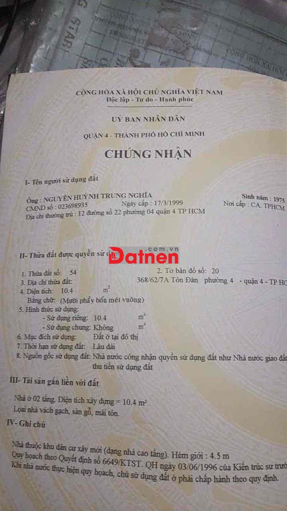 Quý vị đang xem nội dung tin rao "bán lô đất 1.5 tỷ p4-q4 sổ riêng". Mọi thông tin, nội dung liên quan tới tin rao này là do người đăng tin đăng tải và chịu trách nhiệm. Datnet.com.vn luôn cố gắng để các thông tin được hữu ích nhất cho quý vị tuy nhiên Datnet.com.vn không đảm bảo và không chịu trách nhiệm về bất kỳ thông tin, nội dung nào liên quan tới tin rao này.