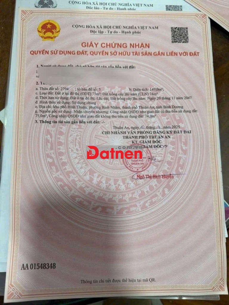 ✍️ Dt: 149m2 ( 5,3 nở hậu 5,9 x 26,5 ), thổ cư: 75m2