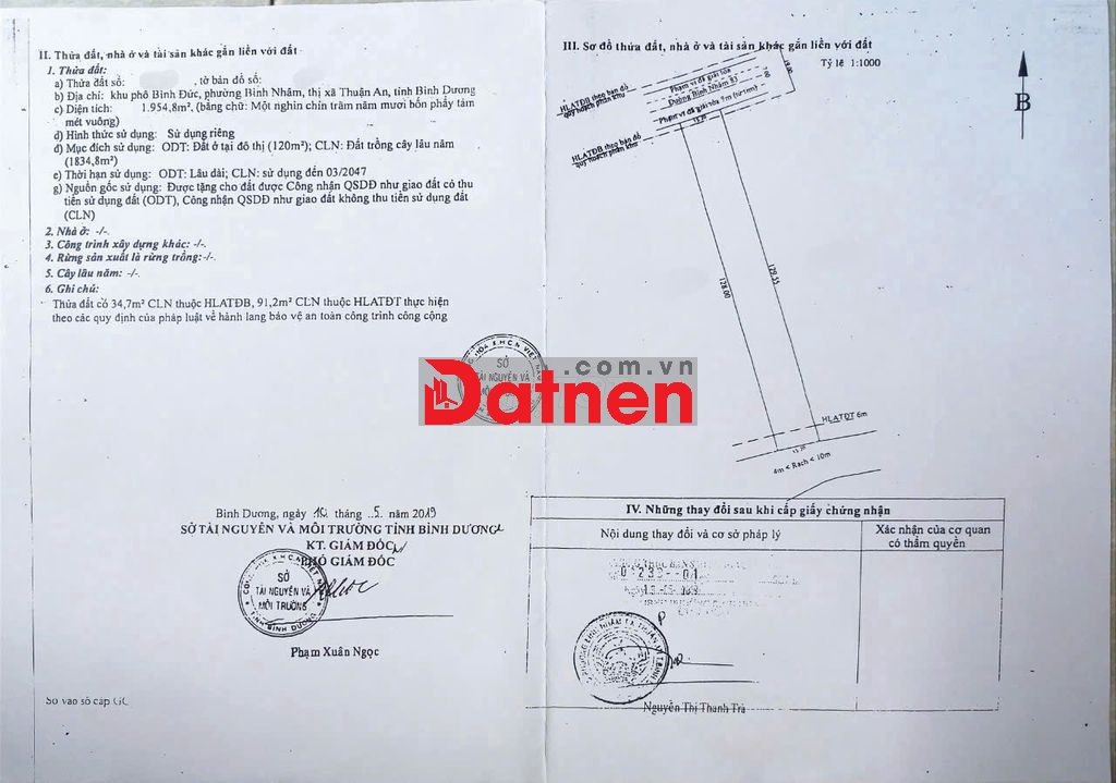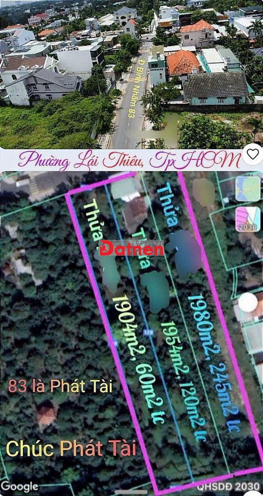 Bán lô đất mặt tiền đường Bình Nhâm 83, P. Bình Nhâm, Tx Thuận An, Tỉnh Bình Dương (cũ). Hiện tại là Phường Lái Thiêu, Tp Hồ Chí Minh.