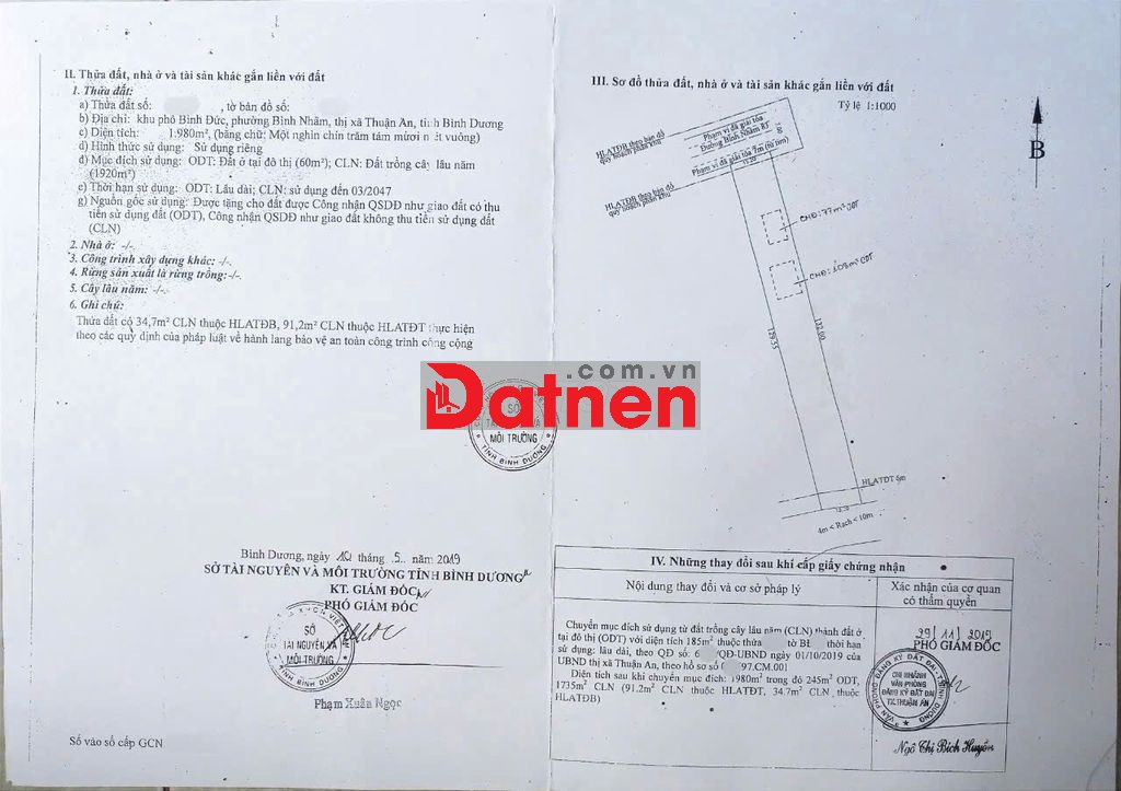 *** Đặc biệt: ngoài mặt tiền trước đất đường Bình Nhâm 83 rộng 20m, còn có mặt sông rạch Bà Vơn sau đất làm không khí mát mẻ.
