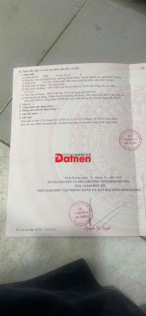 cần bán đất chính chủ đã có sổ , 113m2, thổ cư 60m2