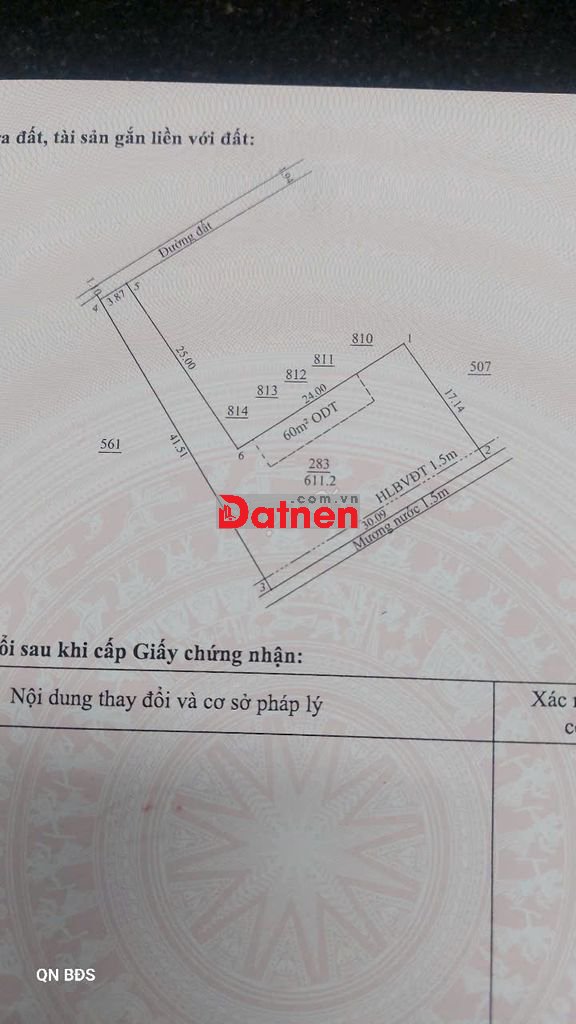 Dt : 611m² . ODT : 60m² ( diện tích thực tế 650m2 )