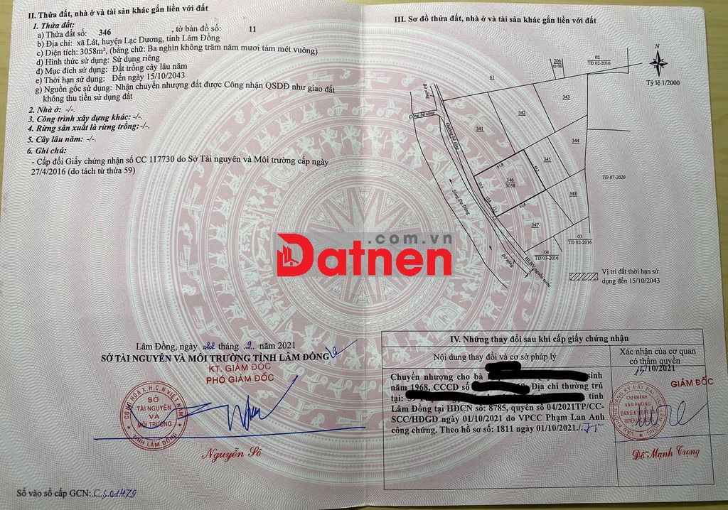 Bán đất nghỉ dưỡng 2 mặt tiền diện tích 3058m2.giá 3,6tr/m2. Mặt tiền chính 49m đường bê tông liên ấp 8m view suối,rừng thông. Mặt tiền hông 61,8m đường bê tông 10m,điện 3 pha. liền kề cụm khu du lịch Đà Lạt (Lạc Dương Đa Nghịt). Đất phù hợp đầu tư, xây homestay, quán cafe, nông trại đón khách tham quan. Đất thuộc trong lộ trình chuyển đổi thuộc thành phố đà lạt. chính chủ.