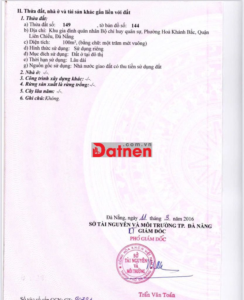 Bán đất mặt tiền 5.5 khu bộ đội trinh sát phường Hòa Khánh