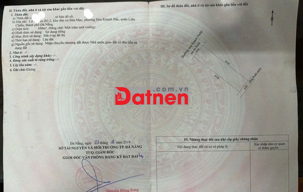 -DTĐ: 100m2 (5x20)m