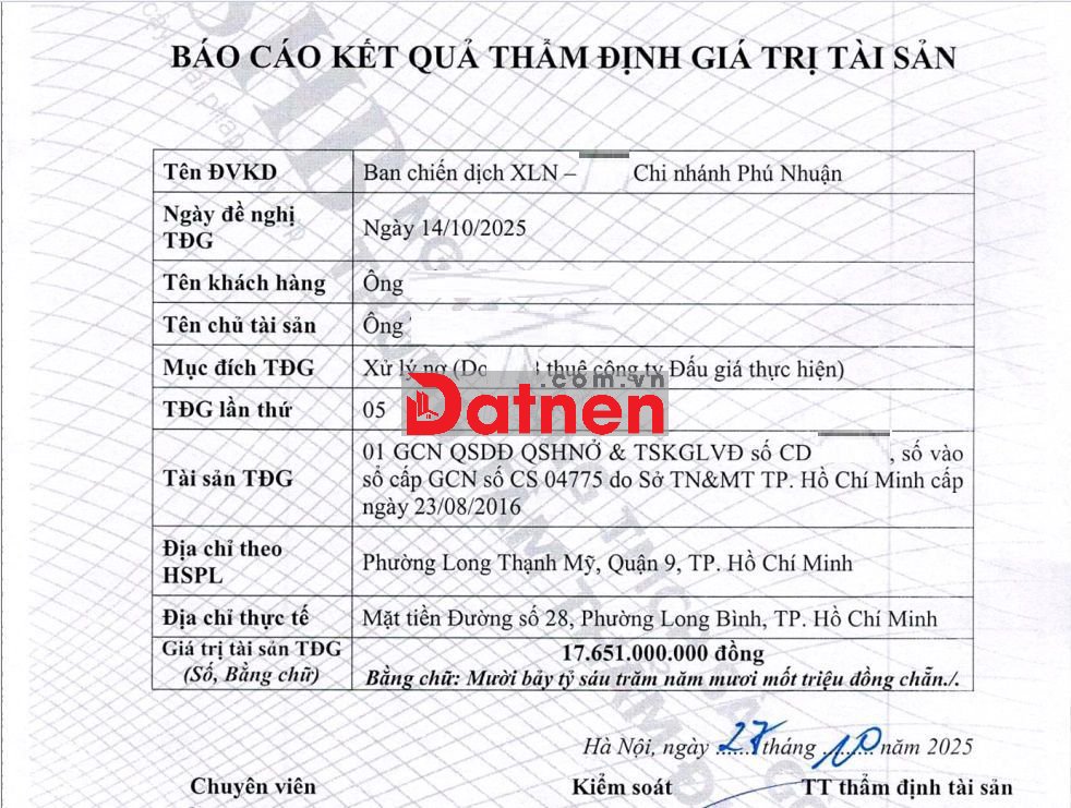 Giá bank thẩm định 17 tỷ 650