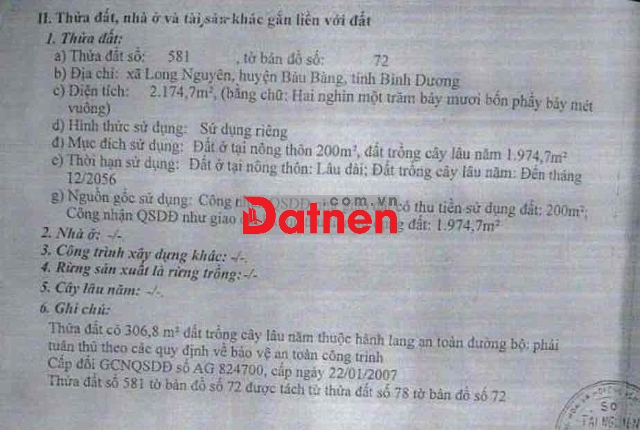 Ngân hàng phát mãi lô đất 1616.8m2 có 200m2 thổ giá tốt