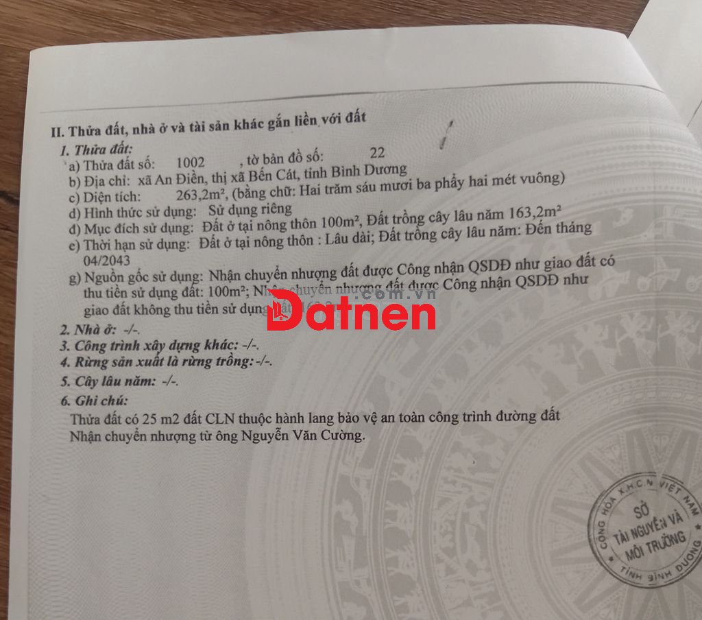 Chính chủ cần bán lô đất An Điền 045