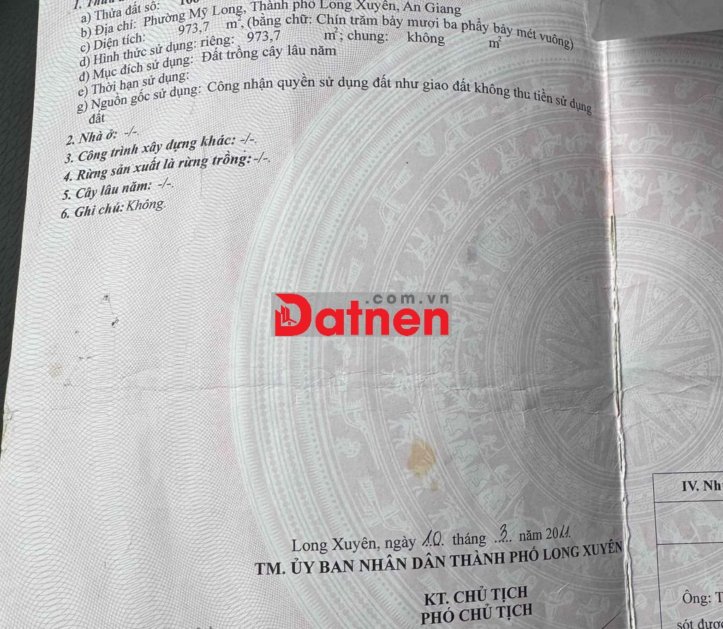 Chính chủ cần ra miếng đất gần 1000m2 vị trí gần trường tiểu học Nguyễn Bỉnh Khiêm, phà An Hoà, nhà thiếu nhi An Giang, chợ Long Xuyên…
