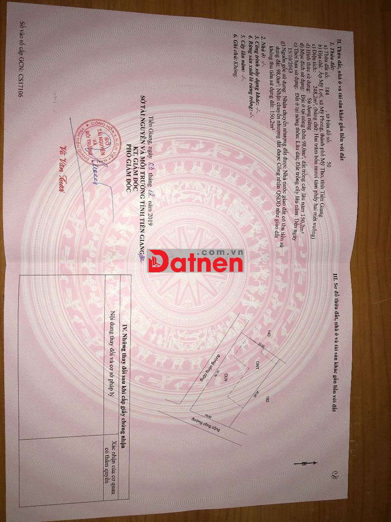 Cần bán lô đất nền xã Mỹ Phong, diện tích ngang 10,9m, dài 21m. Tổng diện 248m2, có 98m2 thổ cư, đất nằm góc đường, đất nở hậu. Vị trí đất cách lộ nhựa khoảng 200m. Ai cần liên hệ sdt: ***.