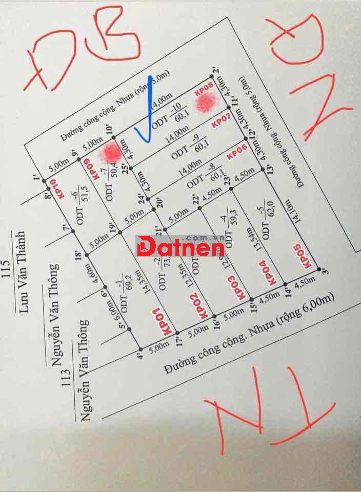 Diện tích 60m2 ngang 4,3m dài 14m, lô góc Hai mặt tiền đường trải nhựa rộng 5m. Ô tô đỗ cửa ngày đêm.