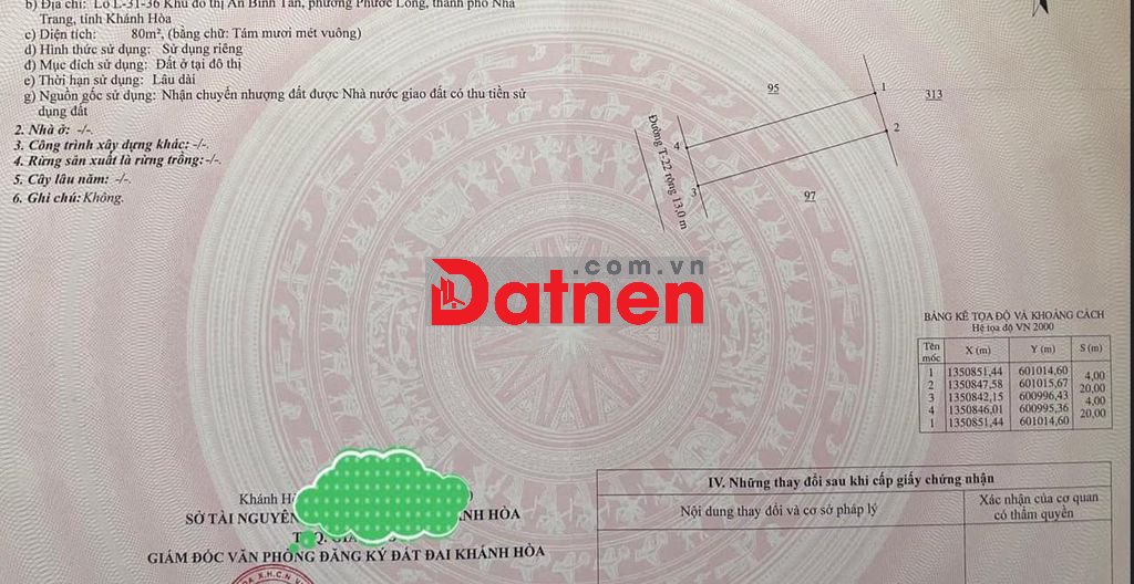 4x20, 80m2 SỔ ĐỎ CHÍNH CHỦ CÓ THỂ VAY BANK 90% , cách công viên 10m; cách bãi tắm 5 phút; ĐẤT KHÔNG BỊ NGẬP LỤT;