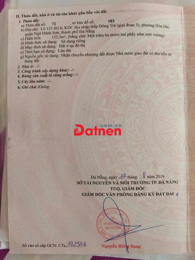 bán rẻ lô đất thích Phước Huệ 132,5m ngang 5 sạch đẹp