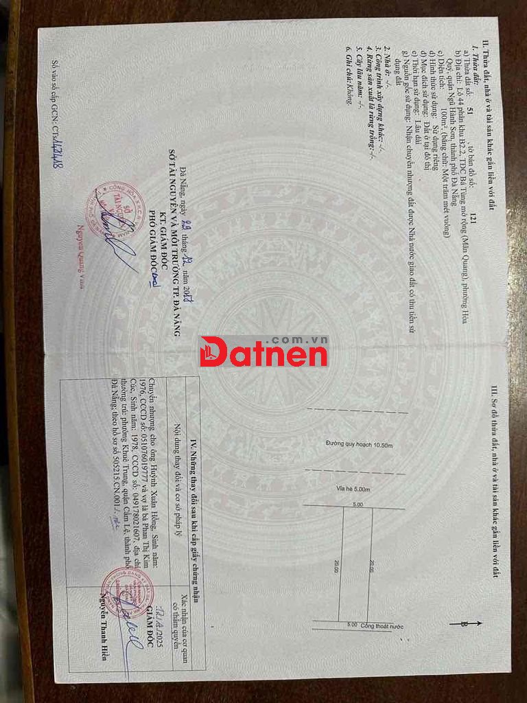 Đất đường Trần Minh Thiệt Bá Tùng 3 Hoà Quý