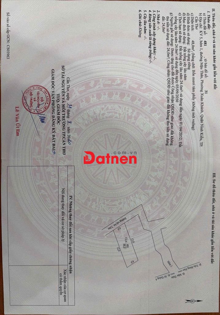 - DT: 4 x 12 = 48m2, đất vườn chuyển TC được