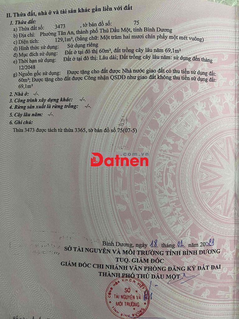 Bán đất thổ cư đường nhựa khu dân cư thủ Dầu Một Bình Dương 1tỷ 950