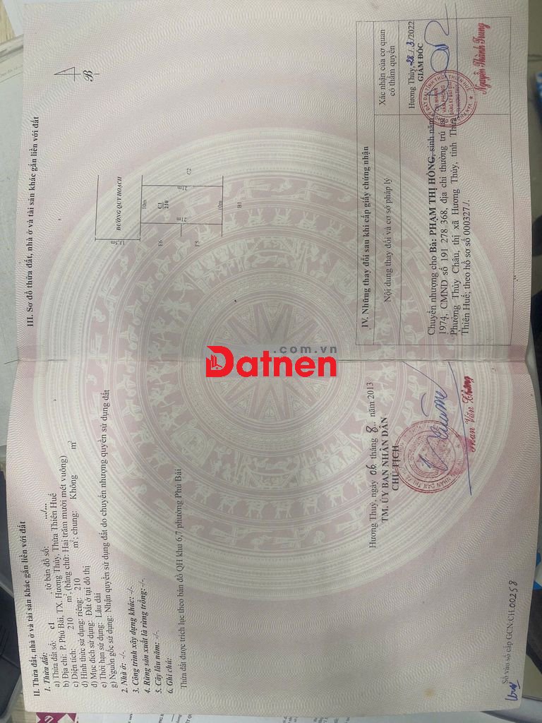 1 lô ở số 8 Hồ trung lượng,phường Phú Bài.diện tích : 10 × 21 = 210m2.