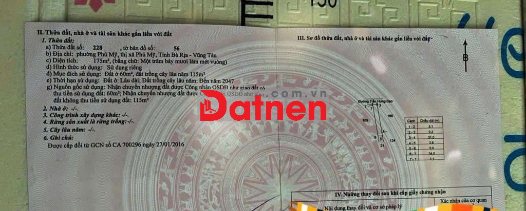 Bán siêu phẩm mt đg trần hưng đạo trung tâm phú mỹ,dt:5x35 giá 6.8ty