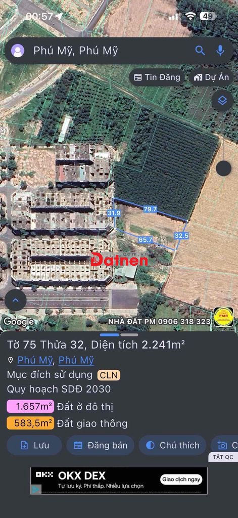 • Trong đó: ~1.657m2 quy hoạch đất ở đô thị / đất hỗn hợp (ODT - DV)