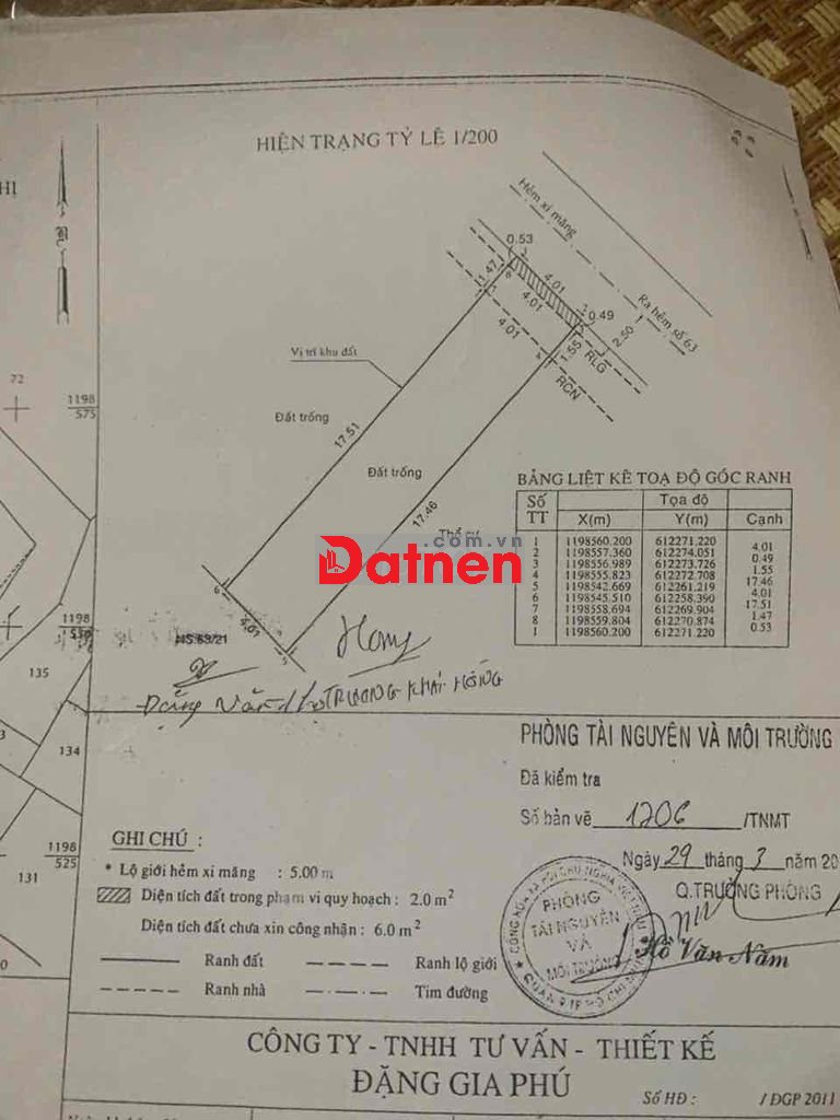 + Dt= 74m2 ngang 4,2m, đường XH 5m ~ 6,8tỷ