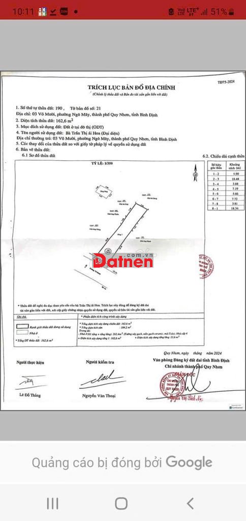 CHÍNH CHỦ CẦN BÁN ĐẤT MẶT TIỀN VÕ MƯỜI P. NGÔ MÂY TRUNG TÂM QUY NHƠN